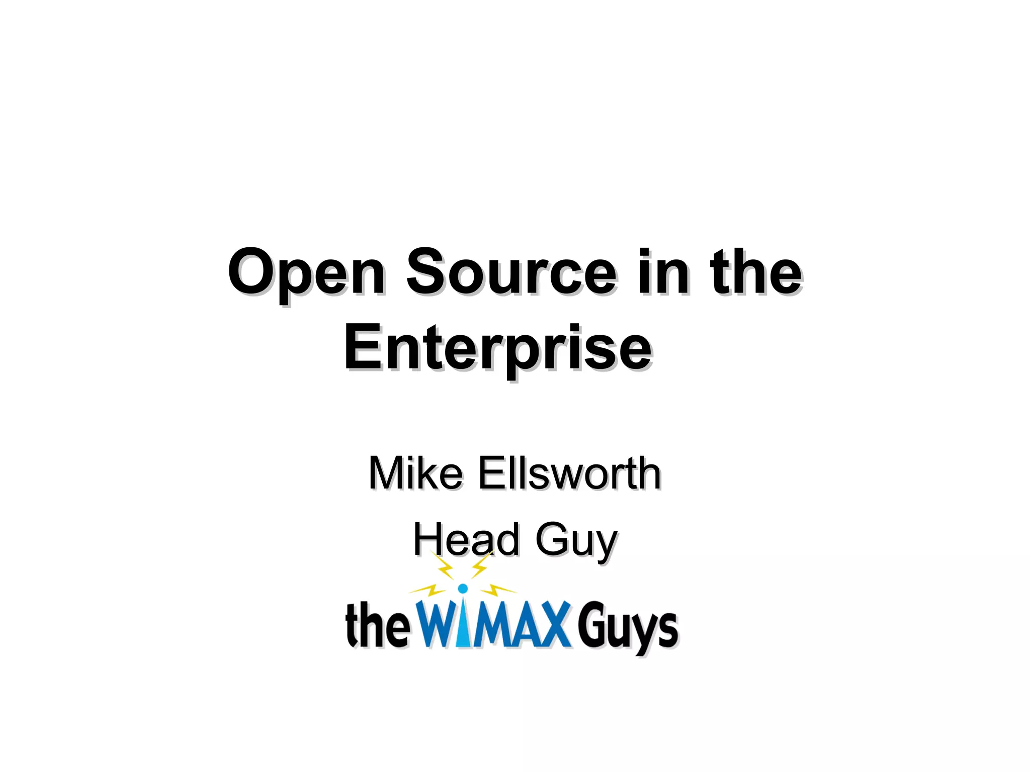 The document discusses the principles, advantages, and disadvantages of open source software, along with examples and case studies of its use in enterprise settings. It highlights the growing adoption of open source technologies like Linux, Apache, and MySQL, and addresses common objections and misconceptions about their security and support. The piece also evaluates the cost/benefit analysis of open source versus proprietary software, suggesting that while open source can be cost-effective, it often comes with its own set of challenges and learning curves.