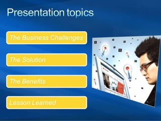 The document outlines the development of web solutions for Numonyx, emphasizing the integration of innovative information technologies to enhance business capabilities amid significant industry challenges. It highlights the collaborative efforts and success factors in implementing a new intranet and internet infrastructure within a tight timeline, focusing on user engagement and operational efficiency. Key lessons include the importance of stakeholder governance, the efficacy of an interactive design approach, and the necessity for timely information architecture decisions.