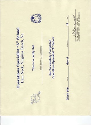 Operations Specialist "A" School Certificate