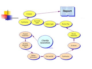 The document discusses effective questioning techniques for developing critical thinking skills in students. It provides examples of different types of questions teachers can ask, including essential questions, hypothetical questions, telling questions, planning questions, organizing questions, strategic questions, elaborating questions, probing questions, and clarifying questions. These questions can be used to engage students' thinking, promote reasoning, encourage speculation and hypothesis, and clarify understanding. The document also discusses using a series of questions in an "arc" to lead students to deeper understanding and having a toolbox of generic questions available for students.