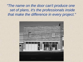 Reynolds-Clark Development, Inc. is a civil engineering firm founded in 2004 with 6 employees including 3 licensed professional engineers. The firm provides a wide range of services related to land development, municipal engineering, environmental planning, and construction management. They have over 100 clients and have completed over 500 specific projects. Their services include subdivision design, water and sewer line design, permitting, and project management.