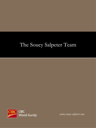 The Soucy Salpeter Team is an investment advisory firm that is focused on building long-term relationships with clients based on trust and satisfaction. The team brings together four individuals with over 40 years of combined experience in financial services. Their goal is to provide superior investment advice and strategies to help clients achieve financial independence. The team includes Terry Soucy, Yuri Trifiro, Tara Theriault, and Andrew Salpeter.