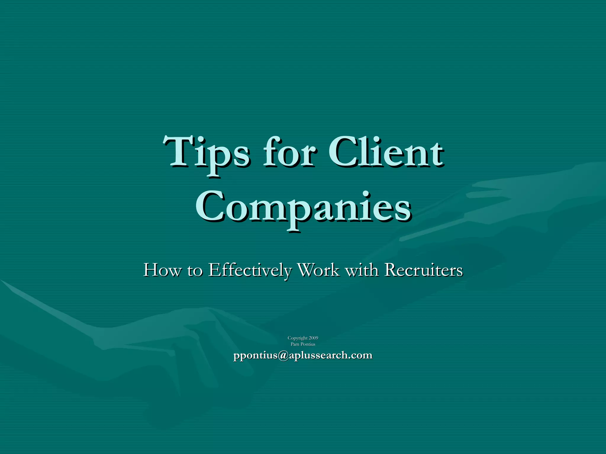 The document provides tips for effective relationships between client companies and recruiters. It outlines how client companies should communicate needs clearly, be accessible and provide feedback. Excellent recruiters inspire loyalty, provide industry knowledge to streamline hiring, and promote winning outcomes for all. Excellent client companies attract talent, communicate goals, specify compensation, and demonstrate flexibility. The document also includes questions for recruiters and hiring managers.