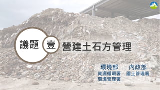 1 議題 壹 環境部 資源循環署 環境管理署 內政部 國土管理署 營建土石方管理