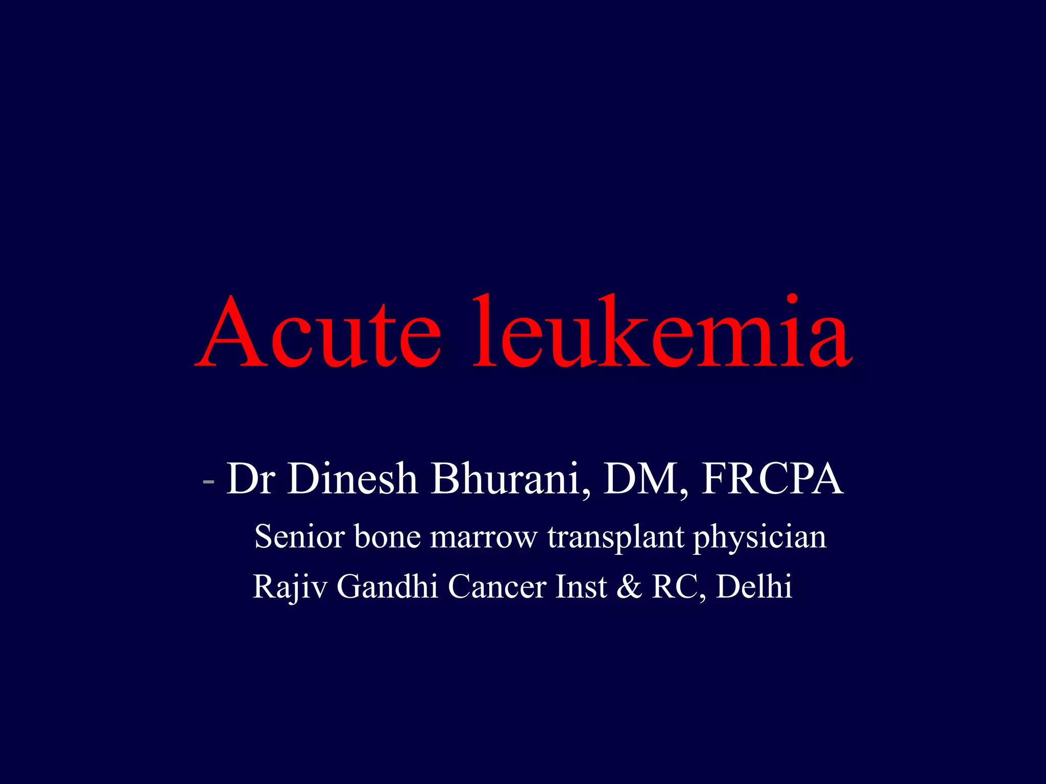 1) Acute leukemia is a type of cancer that affects the blood and bone marrow with two main types - acute lymphoblastic leukemia (ALL) and acute myeloid leukemia (AML).