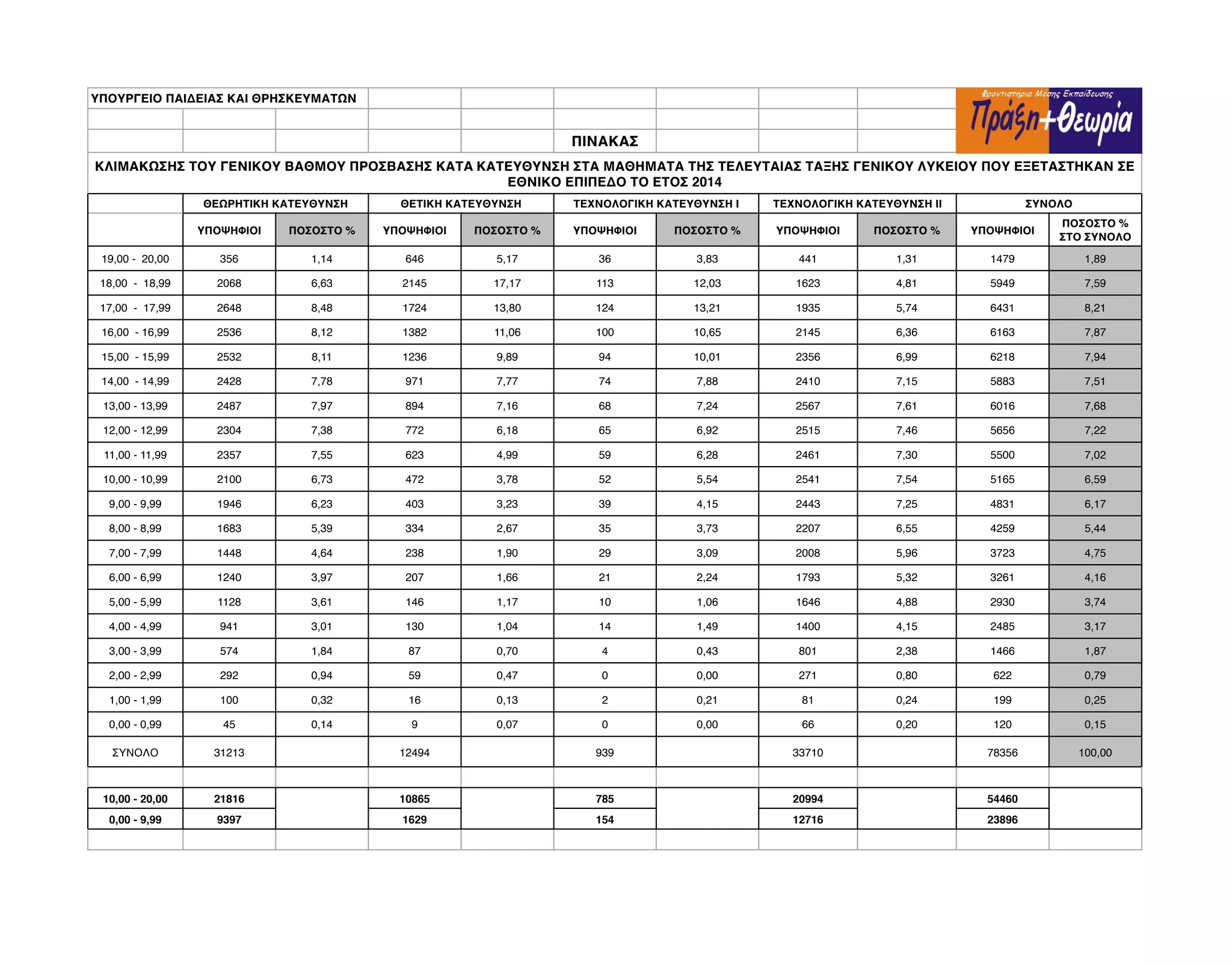 Τα Στατιστικά Στοιχεία του Υπουργείου Παιδείας σχετικά με τα Αποτελέσματα των Πανελλήνιων Εξετάσεων 2014.