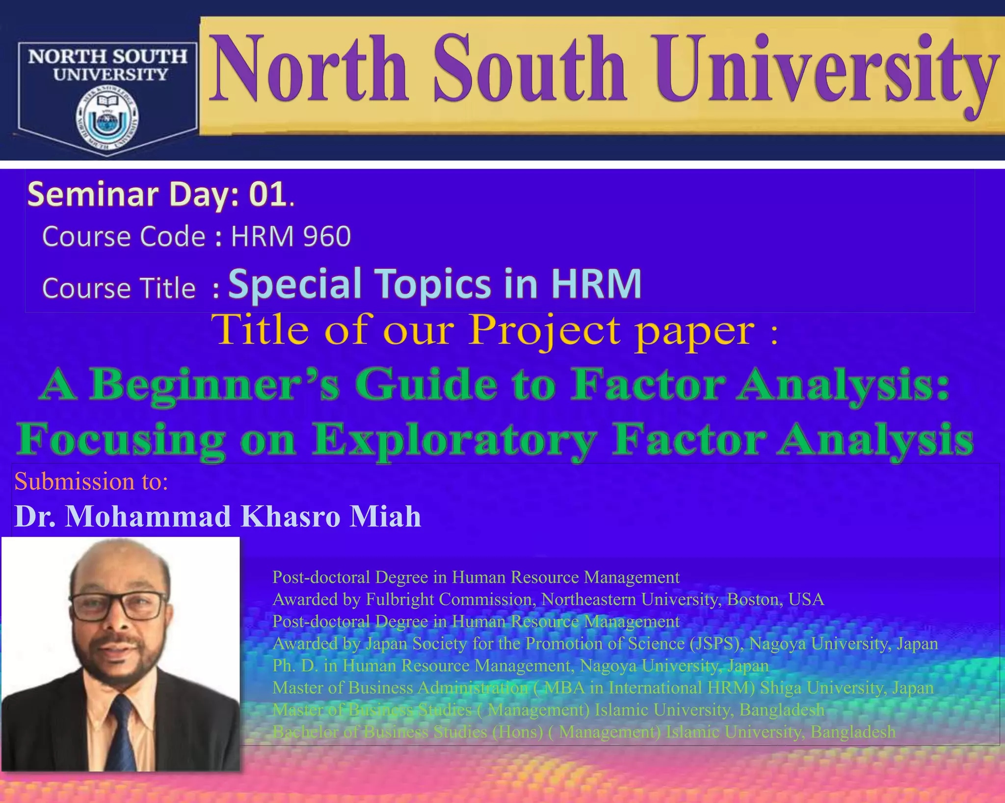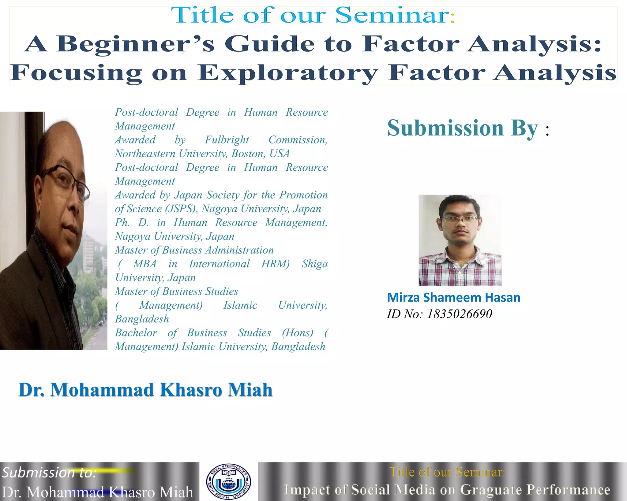 This document lists the academic qualifications of Dr. Mohammad Khasro Miah. It includes two post-doctoral degrees in Human Resource Management from Fulbright Commission, Northeastern University and Japan Society for the Promotion of Science at Nagoya University. It also lists a Ph.D. in Human Resource Management from Nagoya University as well as several Master's degrees and a Bachelor's degree, all related to business or management. The qualifications are submitted to Dr. Mohammad Khasro Miah.