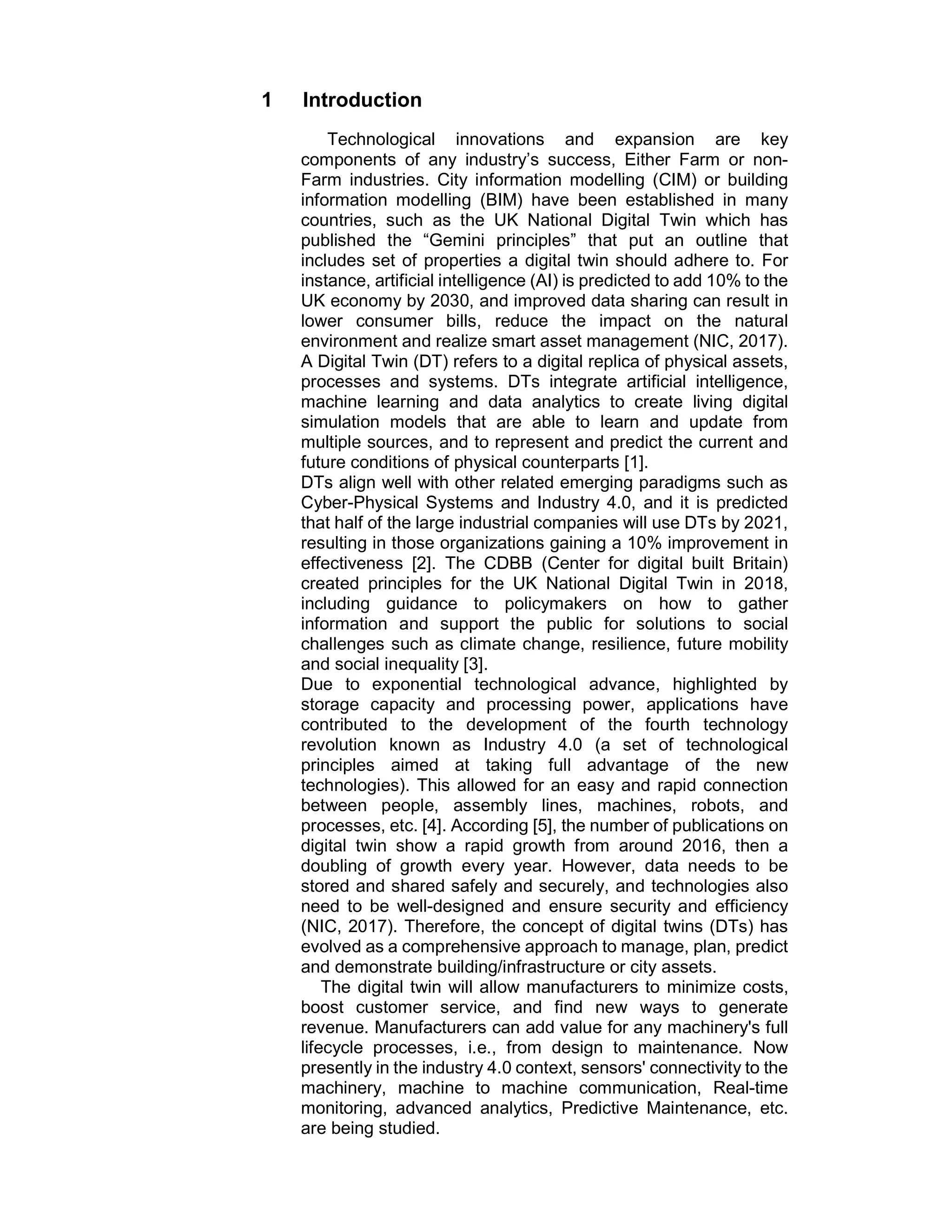 The document is a bibliometric review examining the evolution of Building Information Modeling (BIM) into Digital Twin (DT) technologies, particularly with the integration of the Internet of Things (IoT). It highlights the importance of these technologies in optimizing building performance and efficiency throughout their lifecycle, as well as the benefits realized by organizations adopting them. The study employs a systematic methodology that includes data collection and analysis from the Scopus database to identify research trends and influential works in the field.
