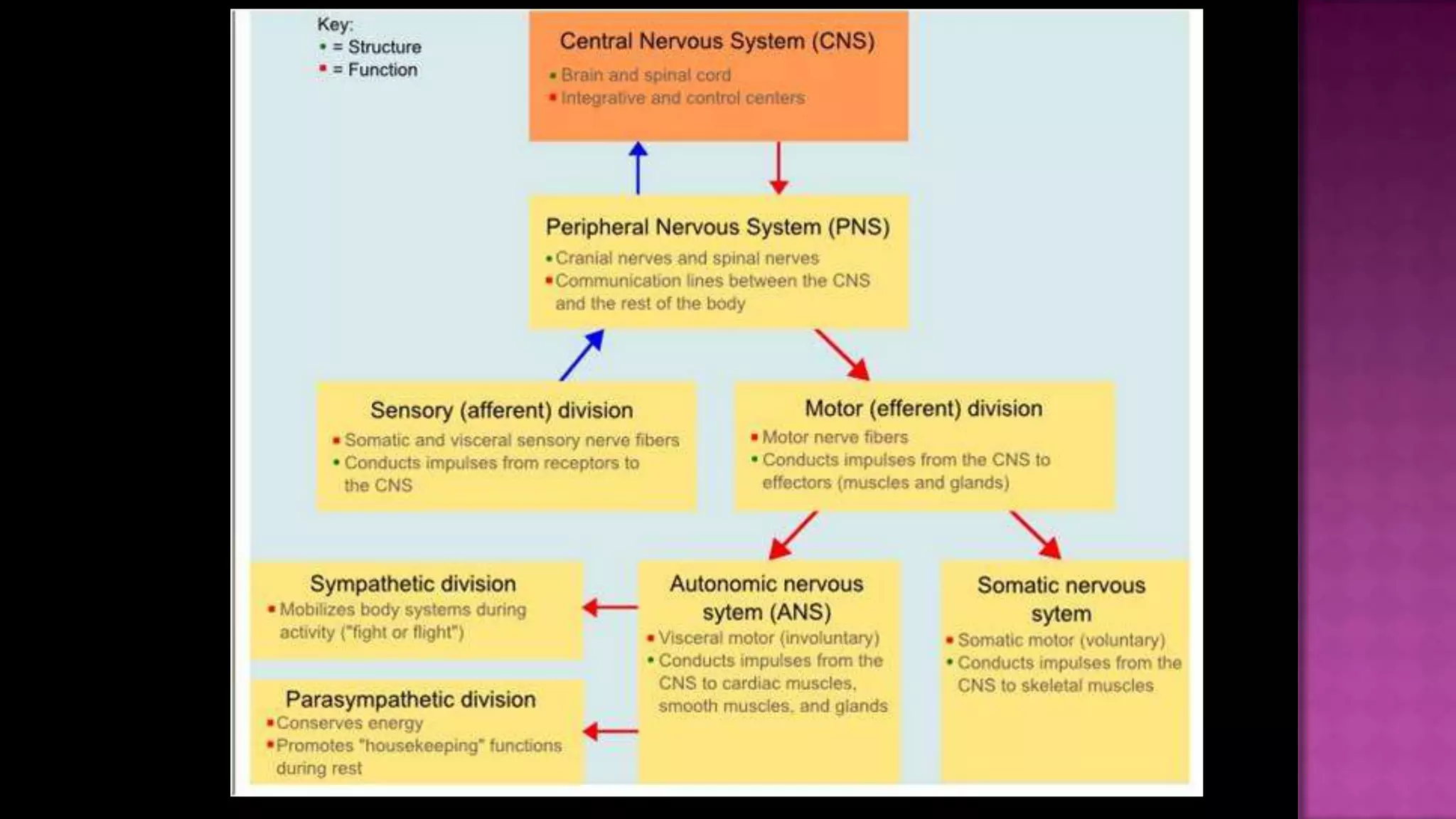 This document provides an overview of the biological bases of behavior, including the structure and function of the nervous system and endocrine system. It describes how the nervous system is composed of the central and peripheral nervous systems. The peripheral nervous system includes the somatic and autonomic nervous systems. It also outlines the basic parts and functions of neurons, neurotransmitters, and the pathway of a neural impulse. Additionally, it summarizes the major structures of the brain and their functions, and identifies the key endocrine glands and hormones.