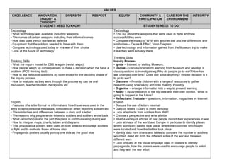 2) Students will learn about technology used in WW1, how people recorded and remembered the past through letters, diaries, and museums. They will compare technology over time.