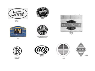 The document discusses the different types of logos, including brand marks, word marks, letter marks, combo marks, and emblems. It notes that great logos can be designed in under 48 hours and that logos often use negative space and hidden meanings. The document also mentions that Kodak created their logo in 1912 and lists the author as Carolyn Davidson.
