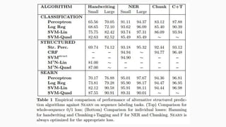 SEARN is an algorithm for structured prediction that casts it as a sequence of cost-sensitive classification problems. It works by learning a policy to make incremental decisions that build up the full structured output. The policy is trained through an iterative process of generating cost-sensitive examples from sample outputs produced by the current policy, training a classifier on those examples, and interpolating the new policy with the previous one. This allows SEARN to learn the structured prediction task without requiring assumptions about the output structure, unlike approaches that make independence assumptions or rely on global prediction models.