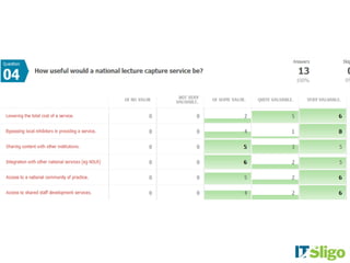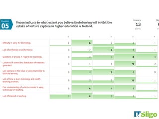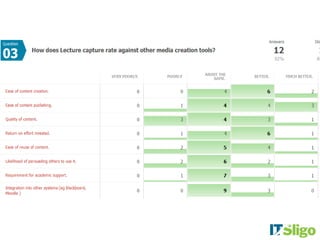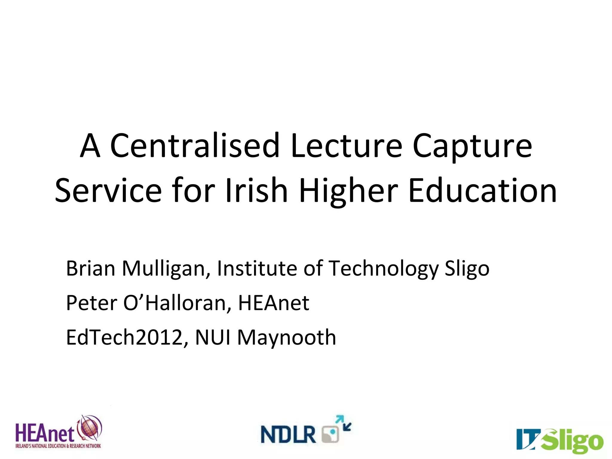 The document discusses a centralized lecture capture service for higher education in Ireland, highlighting the costs and methods of recording and publishing lectures. It outlines the criteria for selecting a lecture capture system and presents a pilot project using Camtasia Relay. Additionally, it provides insights into market trends, costs associated with equipment, and bandwidth requirements.
