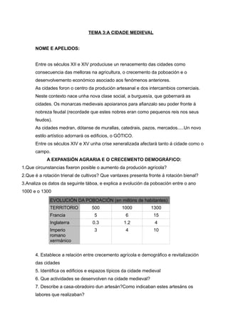 TEMA 3:A CIDADEMEDIEVAL