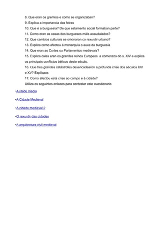 6. Que actividades se desenvolven na cidade medieval?