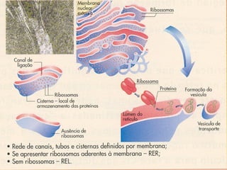 O documento descreve as características estruturais e funcionais das células. Discorre sobre a compartimentalização das células eucariotas e procariotas, destacando a presença ou ausência de membranas e organelos nas células eucariotas e procariotas, respectivamente. Também aborda a evolução das células a partir de um ancestral procariota comum.