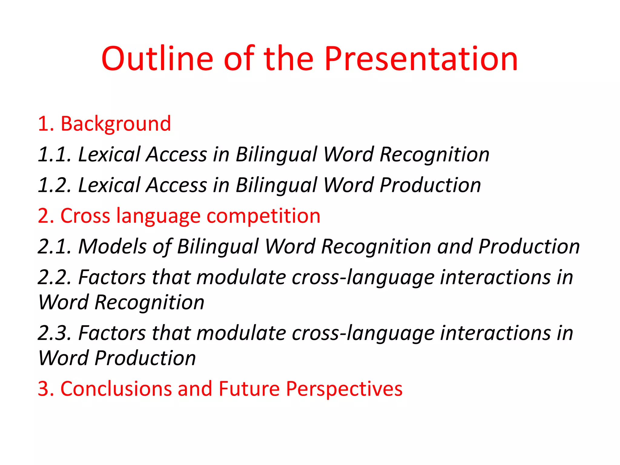 This document summarizes research on bilingual lexical access in both word recognition and production. The key points are: