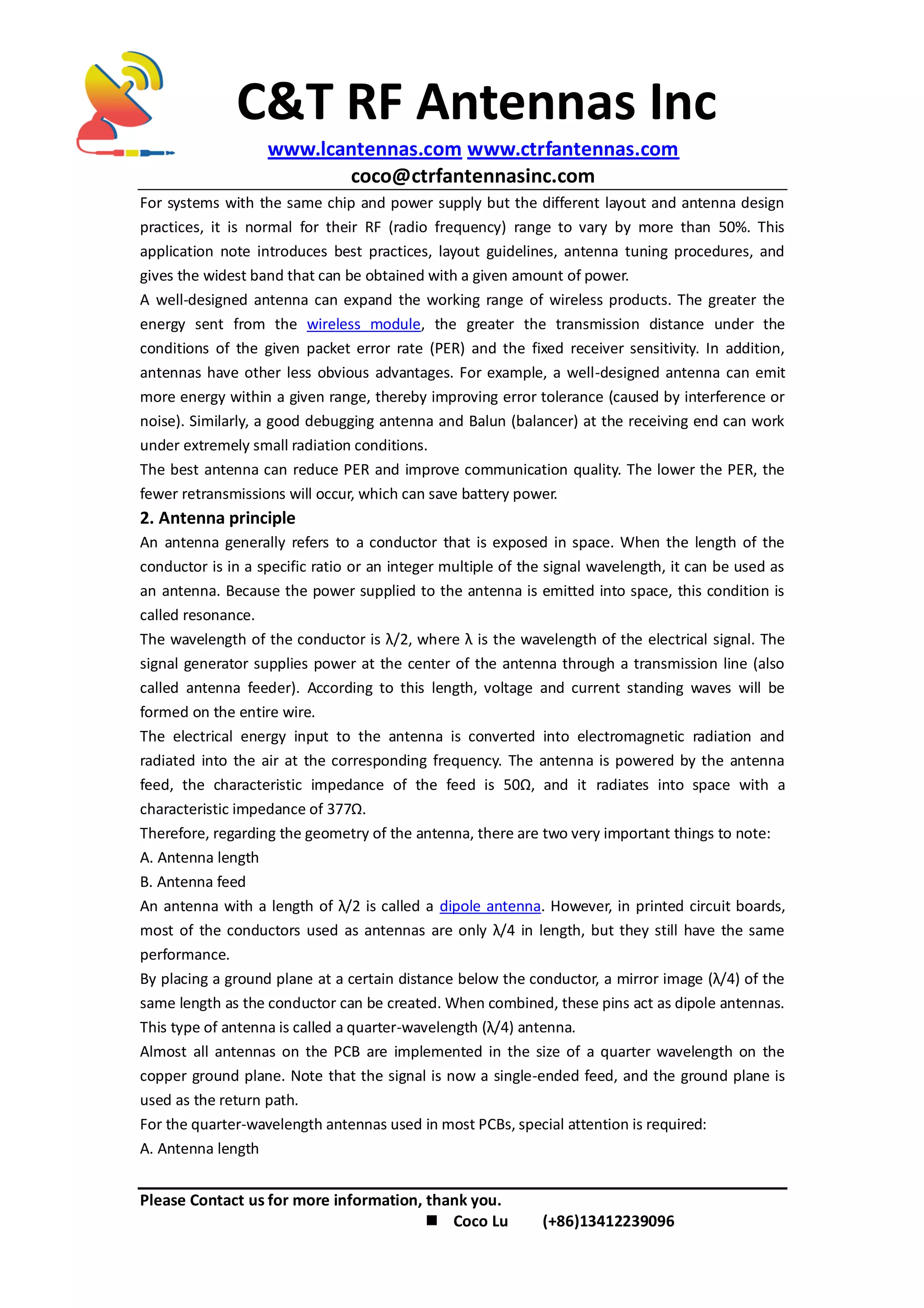 This document provides a comprehensive guide on designing low-cost PCB antennas specifically for 2.4GHz applications, such as Bluetooth Low Energy (BLE) systems. It discusses the importance of antenna design in ensuring optimal wireless performance and outlines different types of antennas, including wire, PCB, and chip antennas, alongside their respective advantages, limitations, and application scenarios. The document also covers various critical parameters and considerations for antenna performance, such as return loss, bandwidth, and the impact of the PCB layout and environmental factors on the antenna's effectiveness.