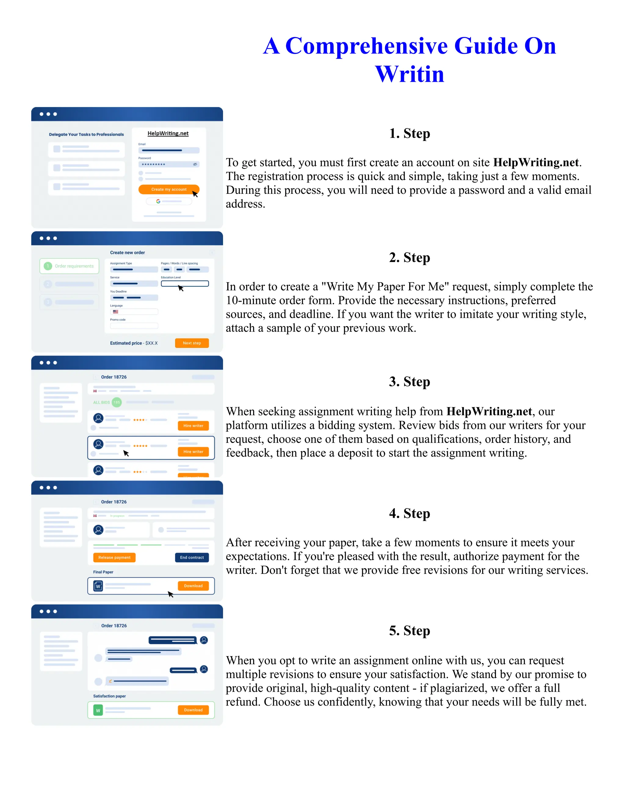 This document provides a 5-step guide to getting writing help from HelpWriting.net: