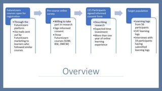 The document presents a conceptual framework for self-directed learning (SDL) in MOOCs, particularly in the context of post-COVID-19 education. It discusses the role of AI tools in enhancing SDL capacities and highlights concerns about equity of access, algorithmic governance, and ethical implications of AI in education. Key insights from scholars underscore the influence of algorithms on educational authority and social order.
