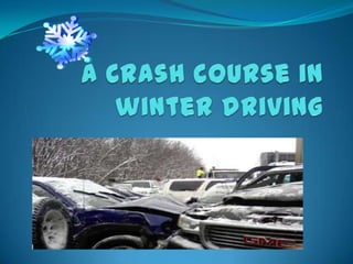 This document provides tips for winter driving safety. It recommends checking weather conditions and road reports before driving, allowing extra time, and ensuring your vehicle is prepared with a clean windshield, full washer fluid, and properly inflated tires. It highlights hazards like obscured vision, slippery surfaces, and traction issues in different conditions. It stresses calling 911 in any accident involving injuries, vehicle damage or incapacitation and fully reporting any incidents involving company vehicles.