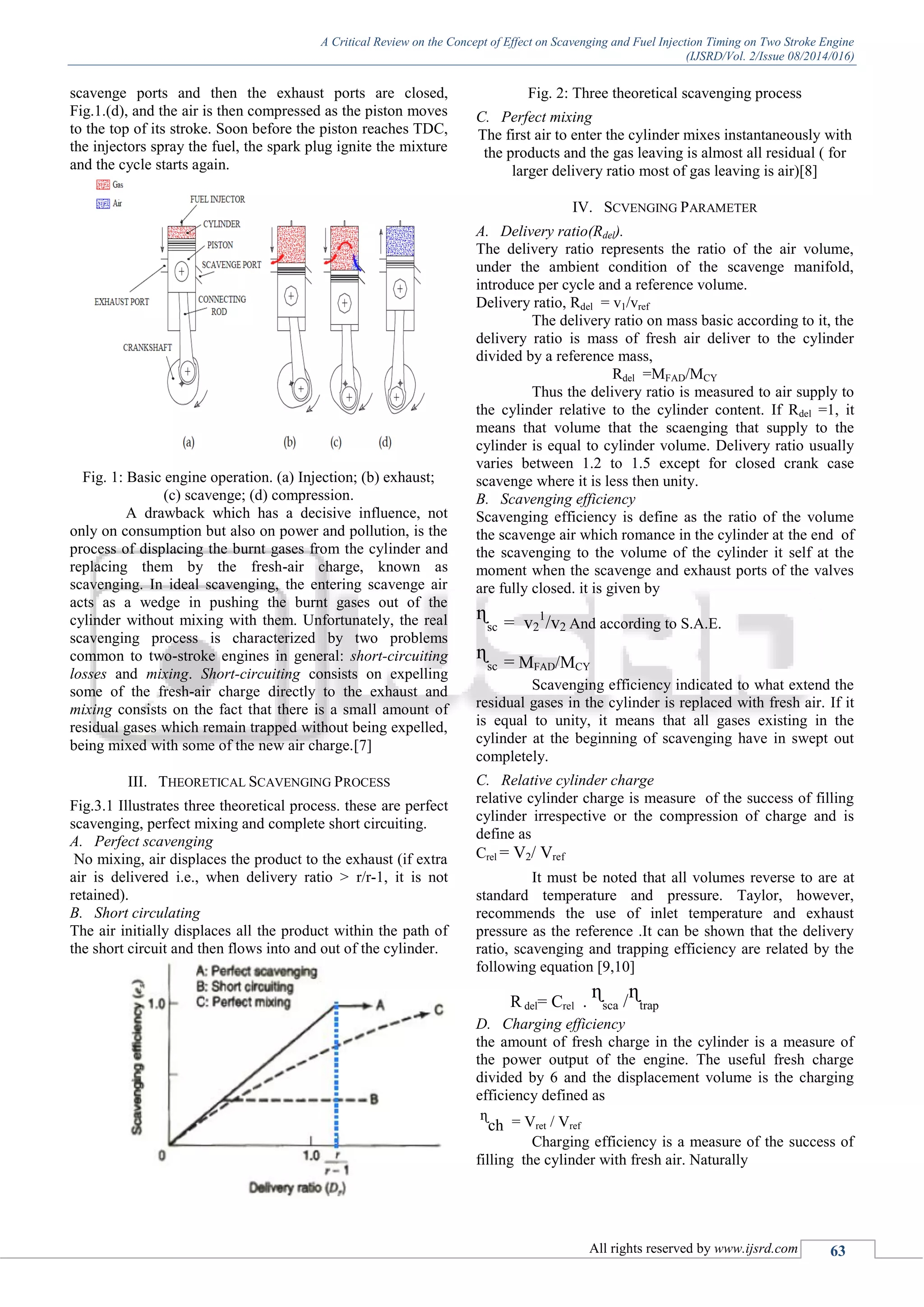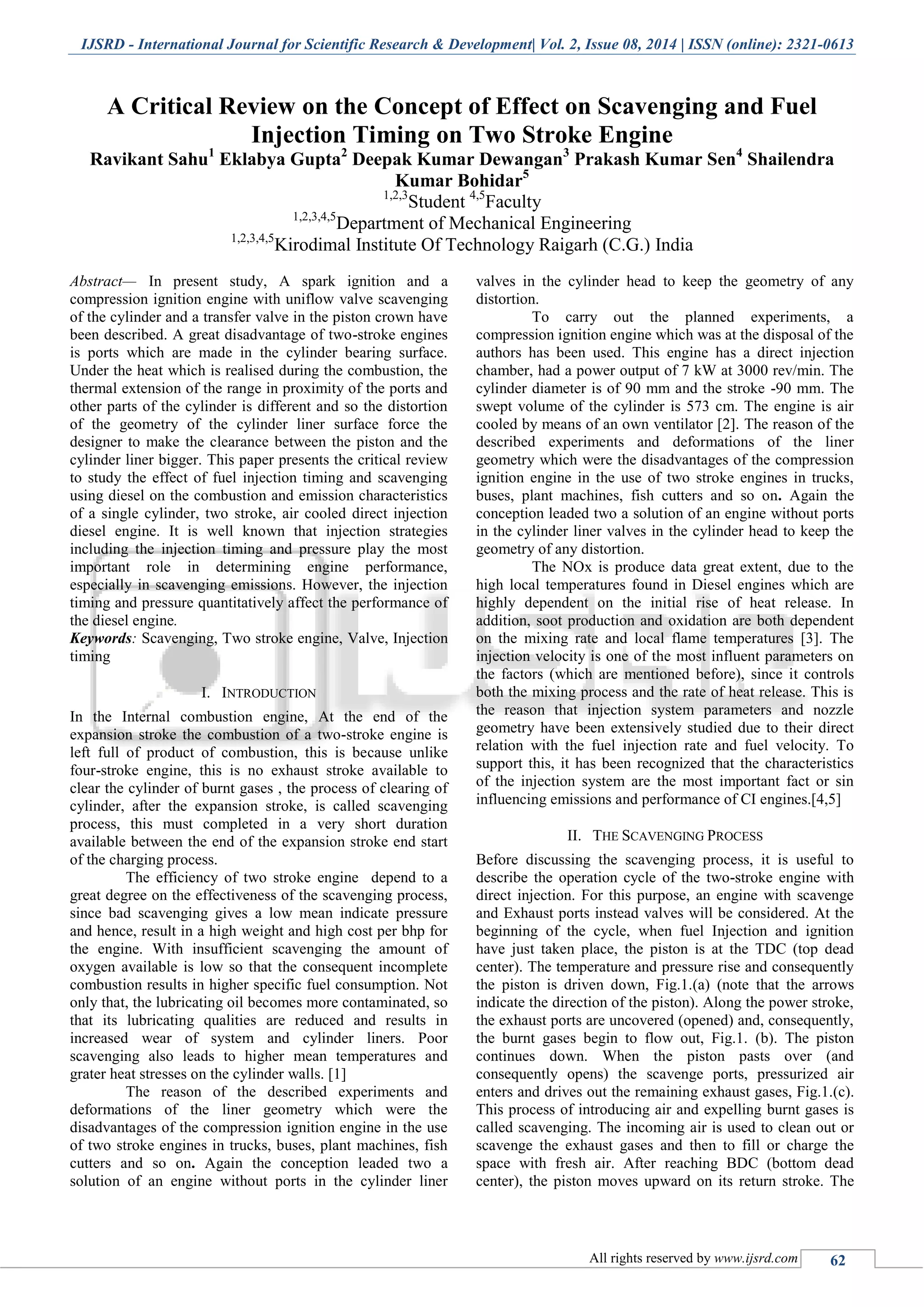 This study critically reviews the impact of scavenging and fuel injection timing on two-stroke engines, focusing particularly on diesel engines with a uniflow valve scavenging system. It highlights the significant role that injection strategies play in determining engine performance, combustion efficiency, and emissions, while also discussing the inherent challenges such as poor scavenging and cylinder distortion due to heat. Various scavenging methods and their respective efficiencies are evaluated to underscore the complexities involved in optimizing two-stroke engine operations.