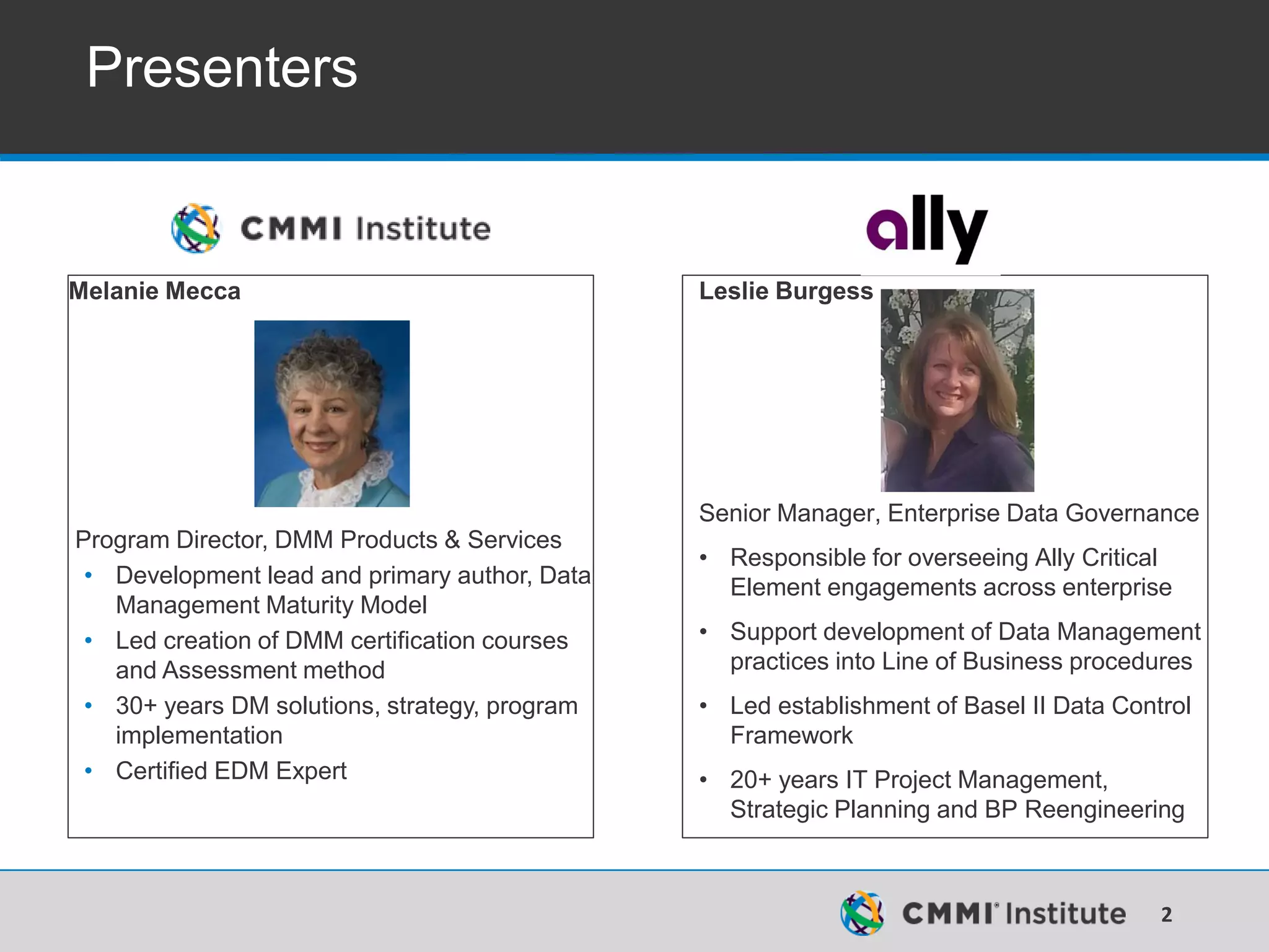 This document provides an overview of the Data Management Maturity (DMM) model and its ecosystem. It introduces the presenters and describes the development of the DMM model over 3.5 years with input from 50+ authors and 70+ peer reviewers. The DMM is designed to help organizations evaluate and improve their data management capabilities through a structured assessment and benchmarking approach. It describes the DMM structure, levels, and themes and outlines upcoming certification programs, products, and events to support widespread adoption of the DMM model.
