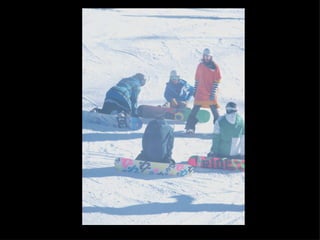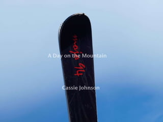 The document describes various winter activities at ski resorts in Colorado such as early morning snowmaking, riding lifts, skiing, learning to ski with help, enjoying views from gondolas, mingling while waiting for buses, and preparing for another day of skiing and snowcat operations. Photos were also taken of skiers and boarders enjoying their time on the slopes.