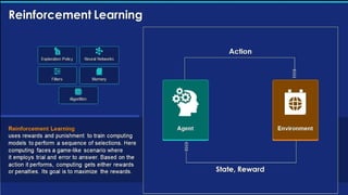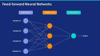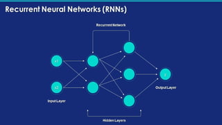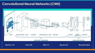 Deep learning is a subset of machine learning that utilizes artificial neural networks (ANN) with layers of interconnected neurons to process data. It includes various types of networks such as feedforward, recurrent, and convolutional neural networks, each serving different applications like image recognition and natural language processing. Key applications of deep learning span healthcare, financial fraud detection, autonomous vehicles, and more.
