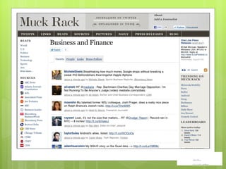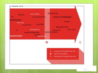 The document discusses the shift from traditional to social media and how brands are losing control of their message. It provides examples of popular social media platforms like Facebook, LinkedIn, Twitter, YouTube and Delicious. It emphasizes developing a digital strategy using these different platforms to engage customers and move them through the purchasing process.