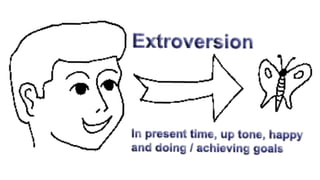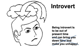 The document distinguishes between extraversion and introversion, emphasizing that it's not related to shyness, social skills, or public speaking abilities. Extraverts tend to focus more on their immediate surroundings, while introverts concentrate on their internal thoughts and feelings.