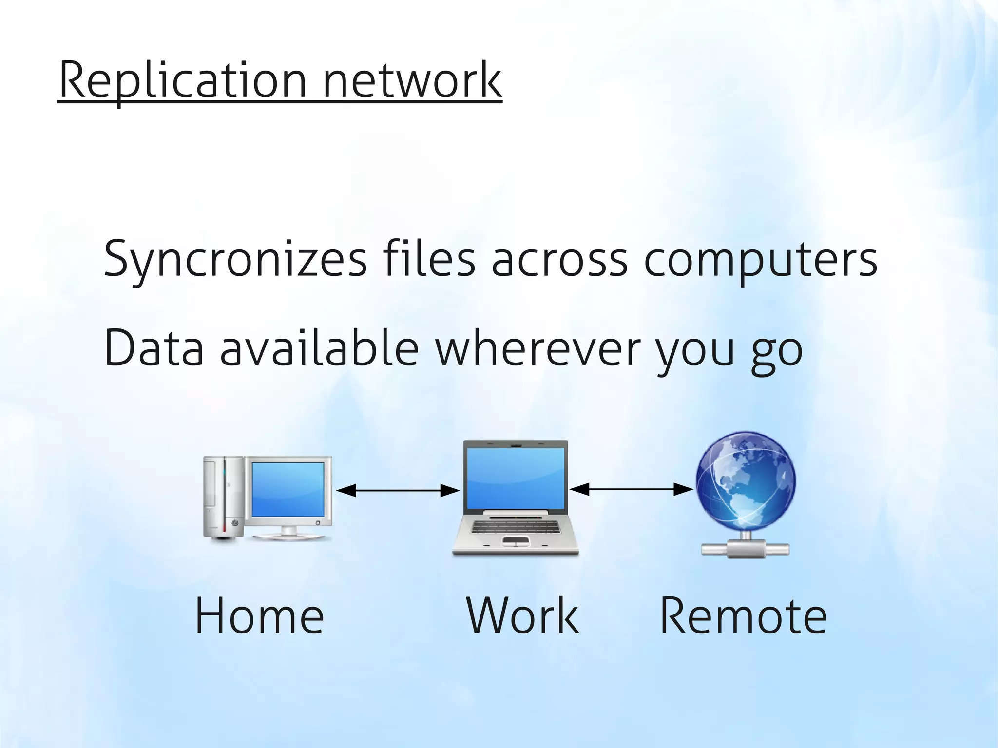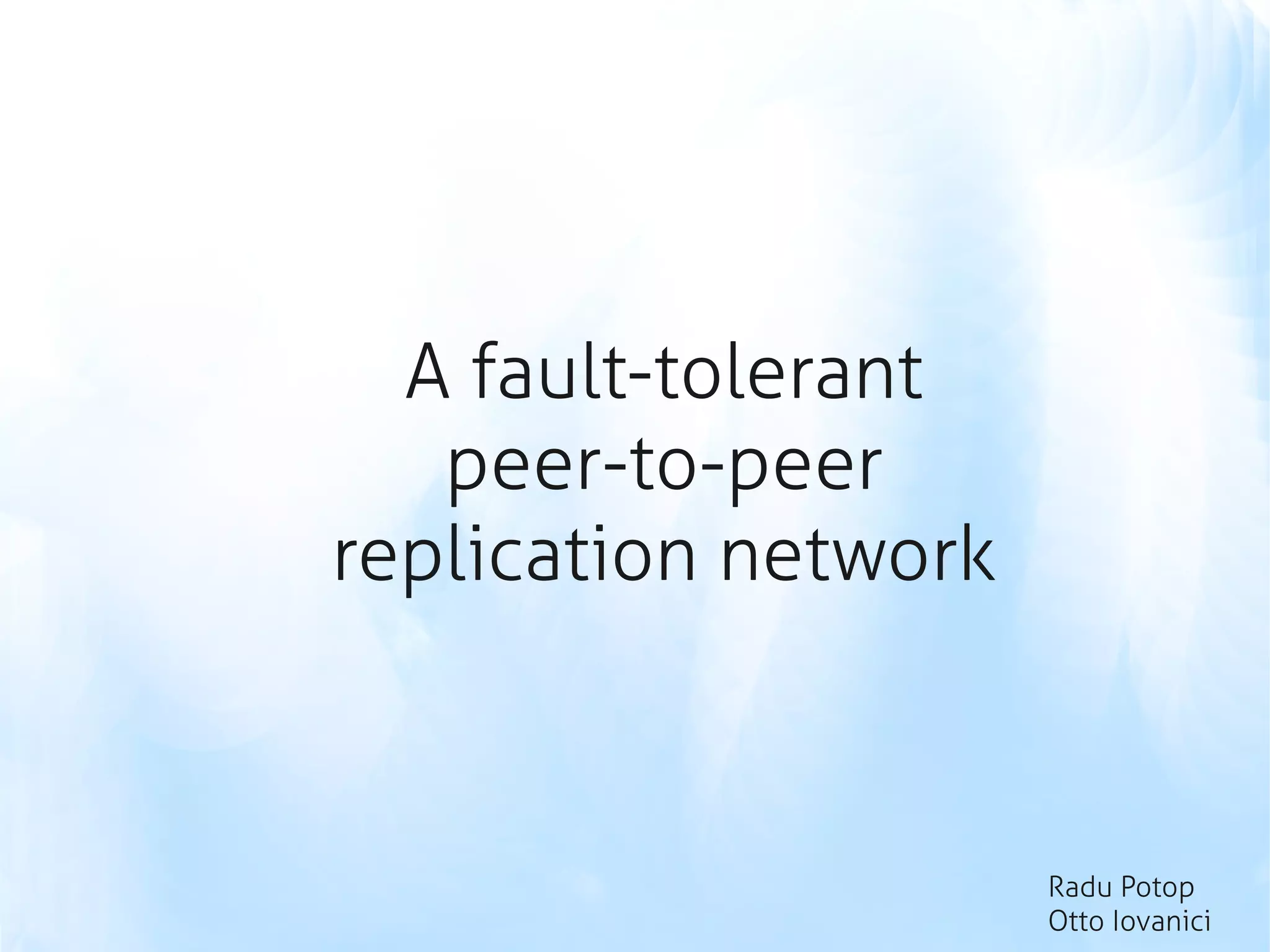The document discusses a fault-tolerant peer-to-peer replication network that synchronizes files across multiple computers, allowing for data access from various locations. It explains the transition from a client-server model to a decentralized, mesh topology, ensuring each node acts as both a client and server for enhanced reliability. Technologies such as SSH and Unison are highlighted for secure file transfers and synchronization between nodes.