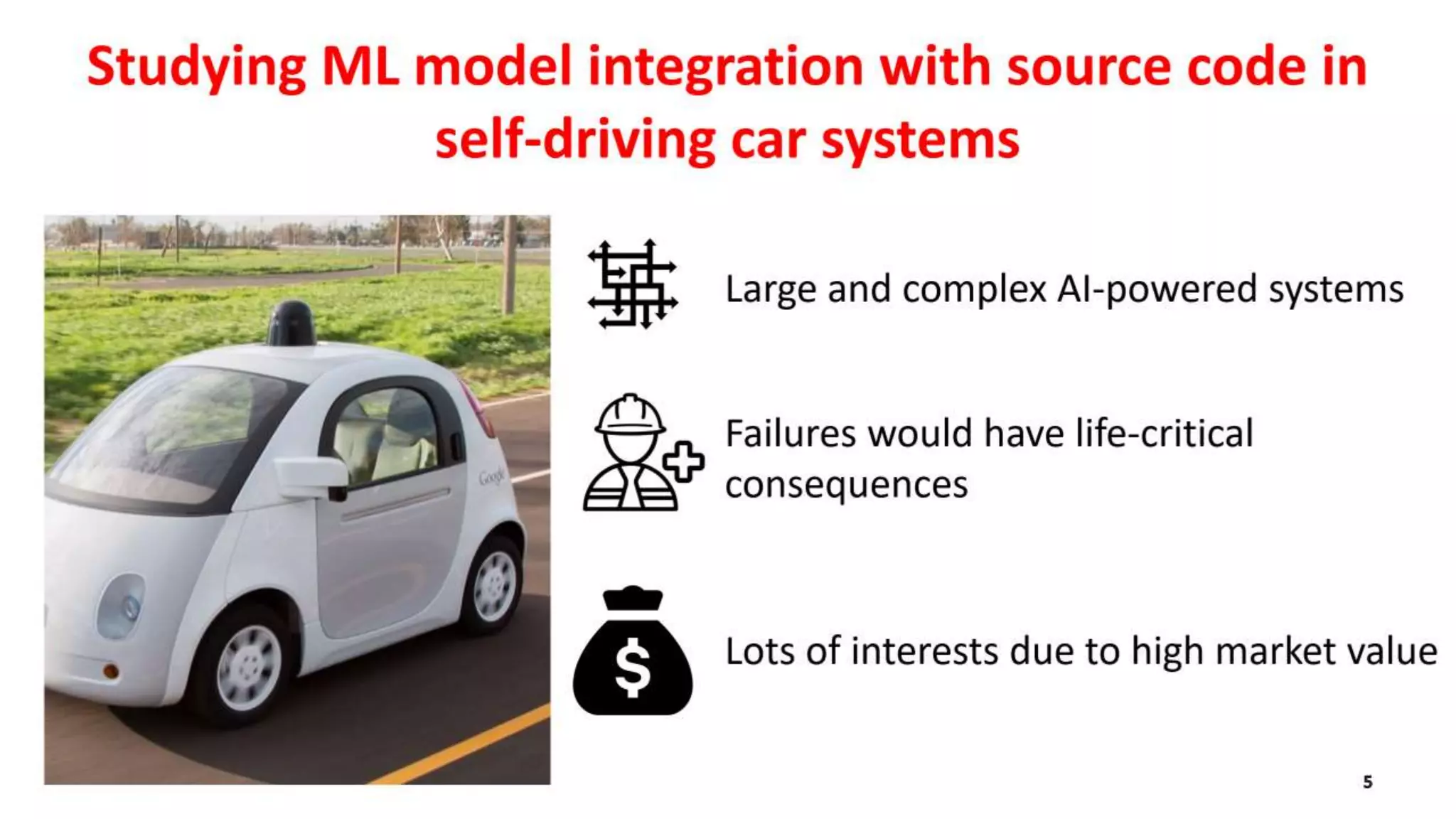 This document summarizes a case study on Apollo, an open source self-driving car system. The study examined how machine learning models are used and integrated within Apollo's codebase. It found that Apollo relies on multiple ML models from different frameworks as inputs to other models, making integration complex. The models are configurable and interconnected, with code providing safety checks on outputs. While ML-related code executes frequently, test coverage for this code in Apollo could be improved according to the study.