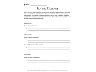 The document focuses on fostering a culture of learning within schools through partnership principles, high-quality professional learning practices, and structural changes. It emphasizes the importance of teacher engagement, collaboration, and continuous improvement in professional development. Key principles include equality, choice, voice, reflection, dialogue, praxis, and reciprocity, which are essential for effective professional learning that benefits both teachers and students.