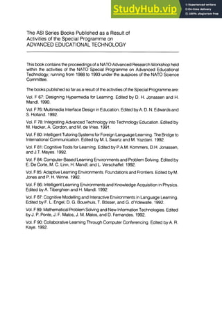 The NATO ASI Series presents the results of activities sponsored by the NATO Science Committee, which aims to disseminate advanced scientific and technological knowledge. The series is published internationally by an board of publishers. It provides full bibliographical references and abstracts to over 30,000 contributions from scientists in its various sections, including life sciences, physics, mathematics, behavioral sciences, and applied sciences. Access is provided both online and via a CD-ROM database.