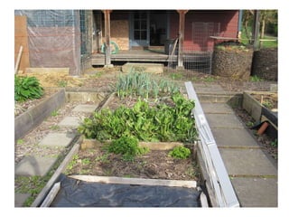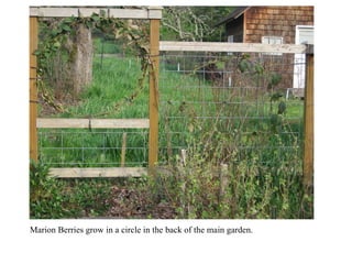 Dennis "Whitey" Lueck has an open garden to the public that contains about a dozen different fruits and two dozen vegetables, including Marion berries in a circle and a Granny Smith apple tree that started bearing fruit after two years. Lueck maintains the garden with about 15 minutes of work per day and shares his father's influence of growing their own food, hoping to show others that composting is not as dirty as some believe.