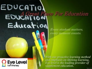 Eye Level Bolingbrook is a leading provider of supplemental education, focusing on proactive learning and lifelong education. Their programs in English and Math encourage critical thinking, problem-solving, and mastery of skills aligned with state standards. Located in Bolingbrook, Illinois, Eye Level emphasizes understanding the child's perspective to foster self-directed learning.