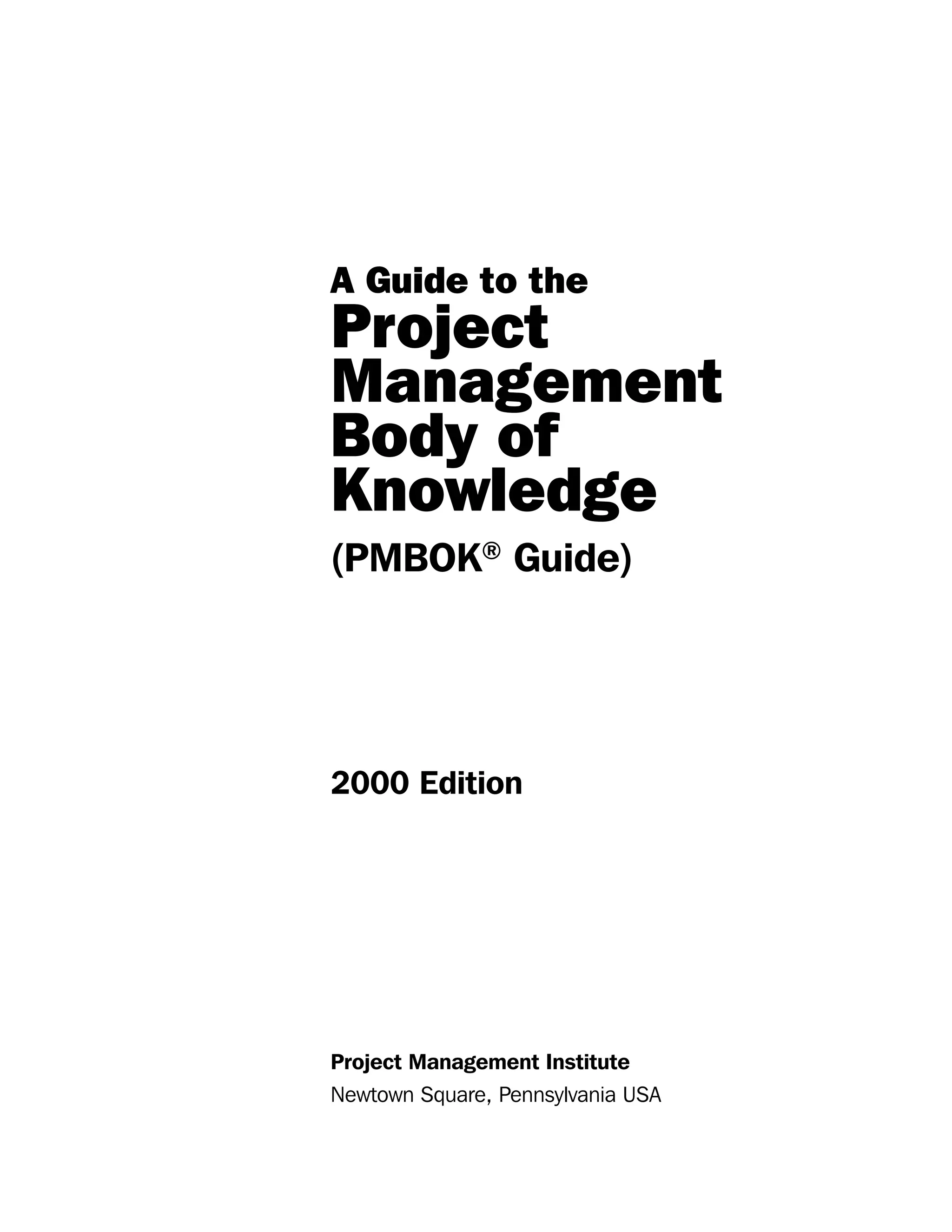 This document provides a summary of the Project Management Body of Knowledge (PMBOK) Guide published in 2000 by the Project Management Institute. It includes an introduction to project management, the project management framework and processes, and knowledge areas such as integration management, scope management, time management, cost management, quality management, human resource management, communications management, risk management, and procurement management. The guide contains chapters on each of the knowledge areas, appendices on contributors and standards setting, a glossary, and an index. It is intended to provide guidance on generally accepted practices for project management.