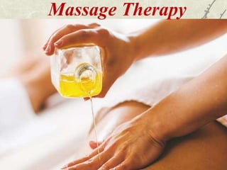 Massage therapy is a technique used to manage health conditions and enhance wellness through the manipulation of soft tissues. Its goals include reducing muscle tension, improving circulation, and enhancing recovery from injuries, while various massage types cater to specific needs. Special considerations and preventive measures are important, and regular sessions are recommended for optimal health benefits.