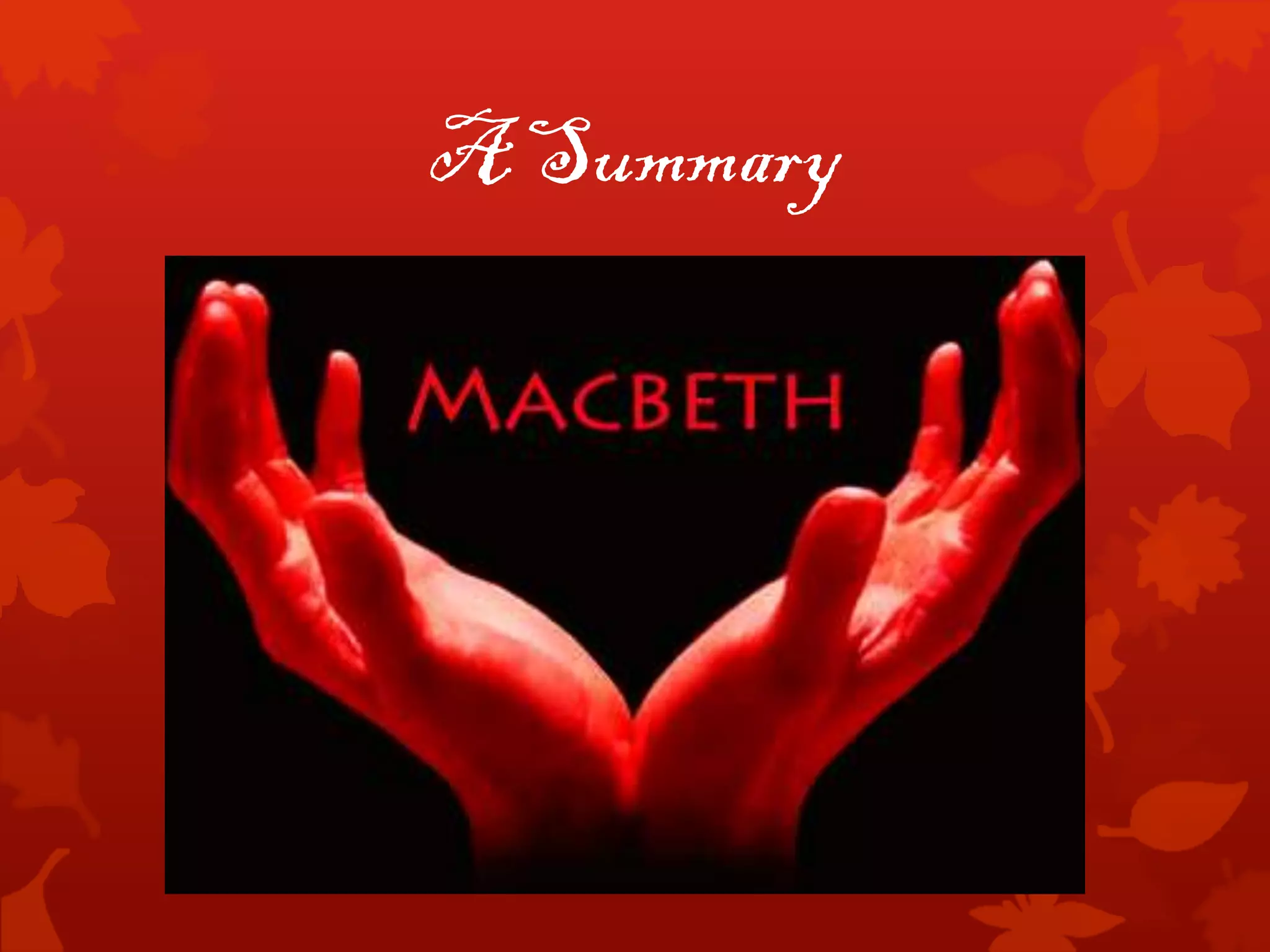 The document provides a summary of the plot of William Shakespeare's play Macbeth in several sentences for each scene. It describes the witches prophesying to Macbeth, his plotting with Lady Macbeth to murder King Duncan, their coronation, and their growing paranoia and crimes. It outlines Macbeth's fear of the prophesies coming true, the murder of Banquo, and Lady Macbeth's madness. Finally, it summarizes Macbeth's defeat as the forces led by Malcolm advance and Macduff kills Macbeth, fulfilling the final prophecy.