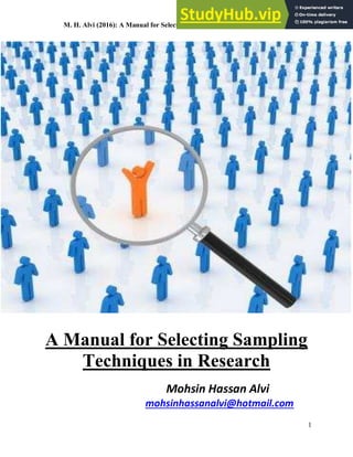This document provides an overview of key concepts related to sampling in research. It defines a population as all members that meet the criteria for a research study, and a sample as a smaller subset of the population selected for investigation. The purpose of sampling is discussed as drawing inferences about the total population based on information from the sample, with the goal of the sample being representative of the population to obtain generalizable results. Different types of probability and non-probability sampling techniques are then introduced.