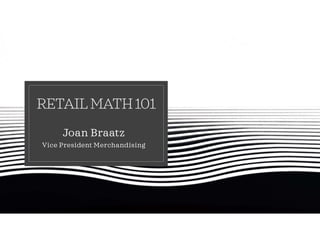 The document outlines essential retail formulas used in merchandising, such as initial mark-up, net sales, gross margin dollars, and markdown calculations. It also covers key metrics like average unit retail, sell-through rate, and weeks of supply. The author, Joan Braatz, provides her contact information and links to her professional profiles.