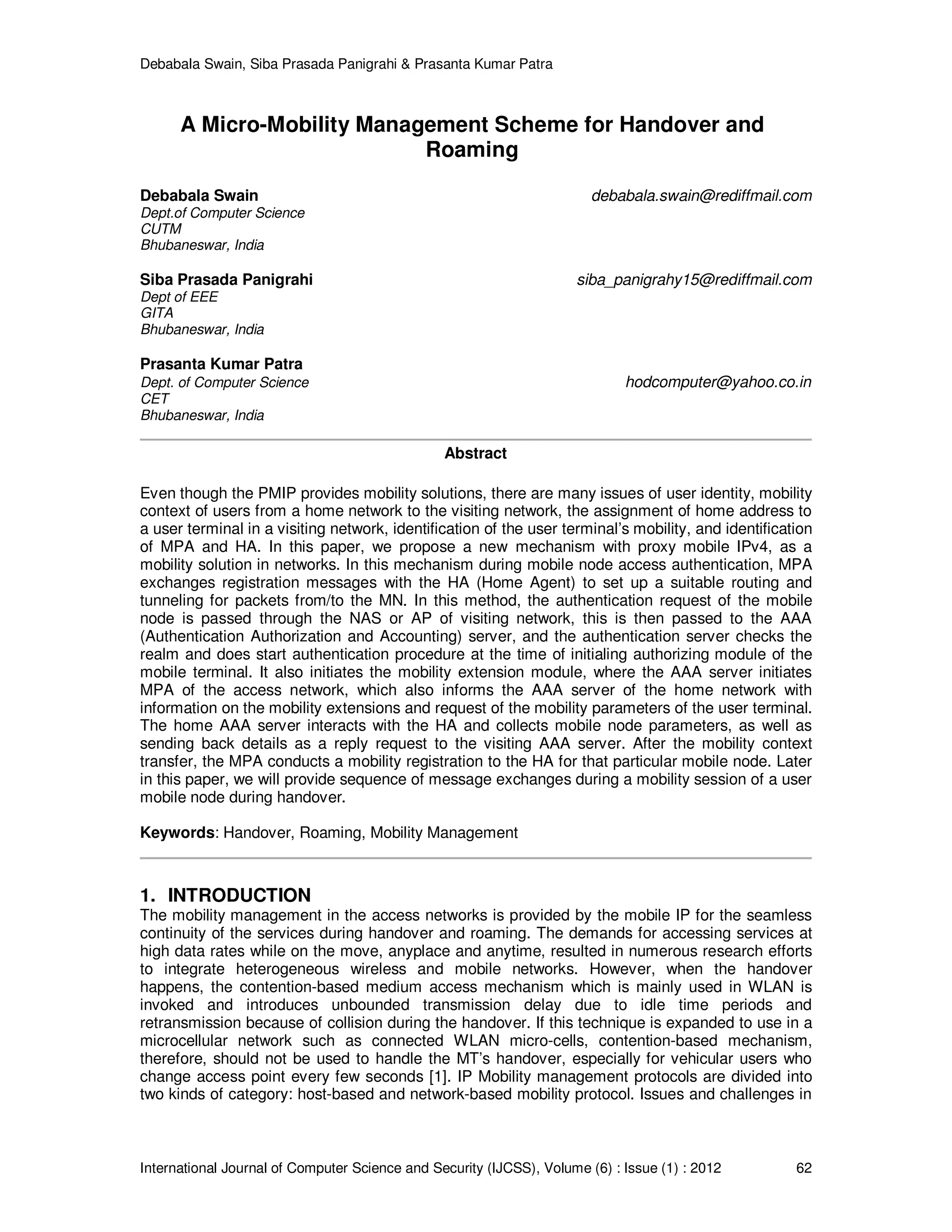 The document presents a new proxy mobile IPv4 mechanism for mobility management during handovers and roaming, addressing issues related to user identity and context transfer between networks. It emphasizes the integration of Authentication, Authorization, and Accounting (AAA) servers to facilitate seamless user authentication and mobility registration within both home and visiting networks. The proposed solution aims to support unmodified hosts, reduce air-link consumption, and enhance the capabilities of mobile proxy agents to manage user mobility more effectively.