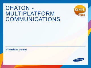 Chaton is a multiplatform messaging service offering features like group chat, multimedia sharing, and animated messages, compatible with various operating systems. It provides an open API that allows third-party applications to access Chaton's user base and features, enabling integration with other services. The document outlines Chaton's functionality, platform support, and API structures for developers looking to leverage its capabilities.