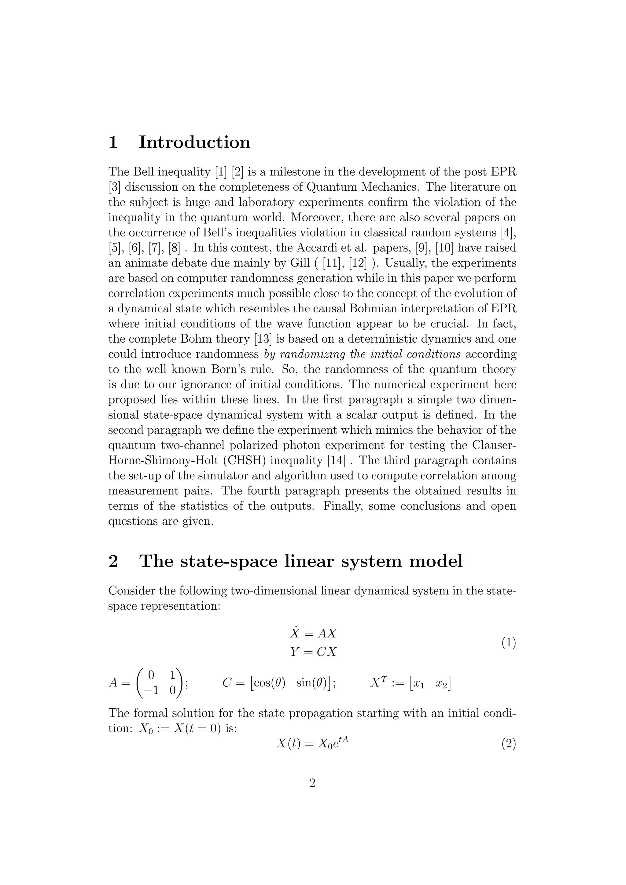 The document discusses a classical non-local linear dynamical system designed to simulate a two-channel quantum coincidence experiment, demonstrating violations of Bell's inequality, particularly in the form of the Clauser-Horne-Shimony-Holt (CHSH) inequality. The research indicates that these violations can reach up to 100% depending on a parameter that introduces non-locality tied to initial conditions. The findings suggest that the violation outcomes depend significantly on the chosen angles for measurements, with implications for understanding the parallels between classical and quantum systems.