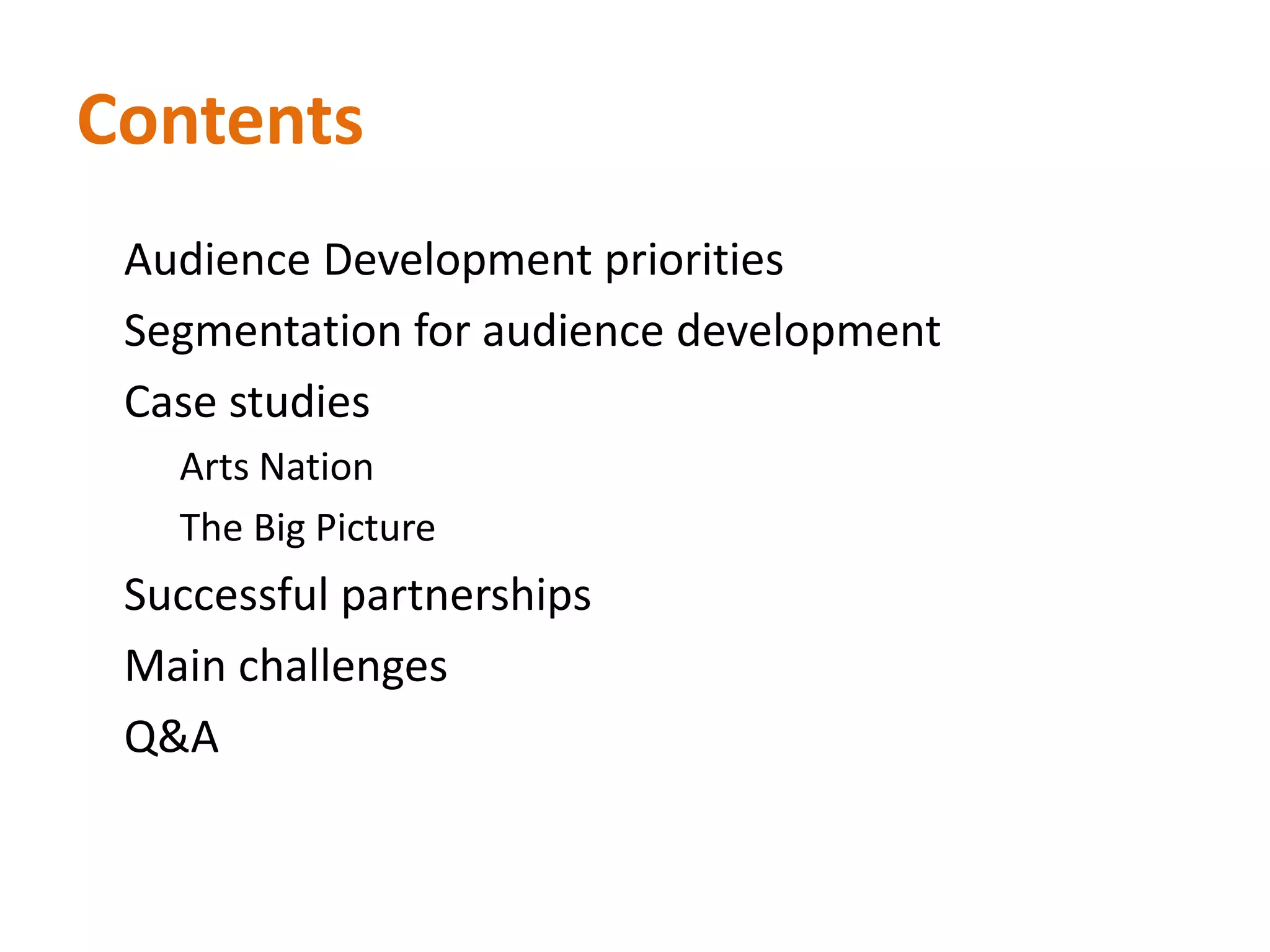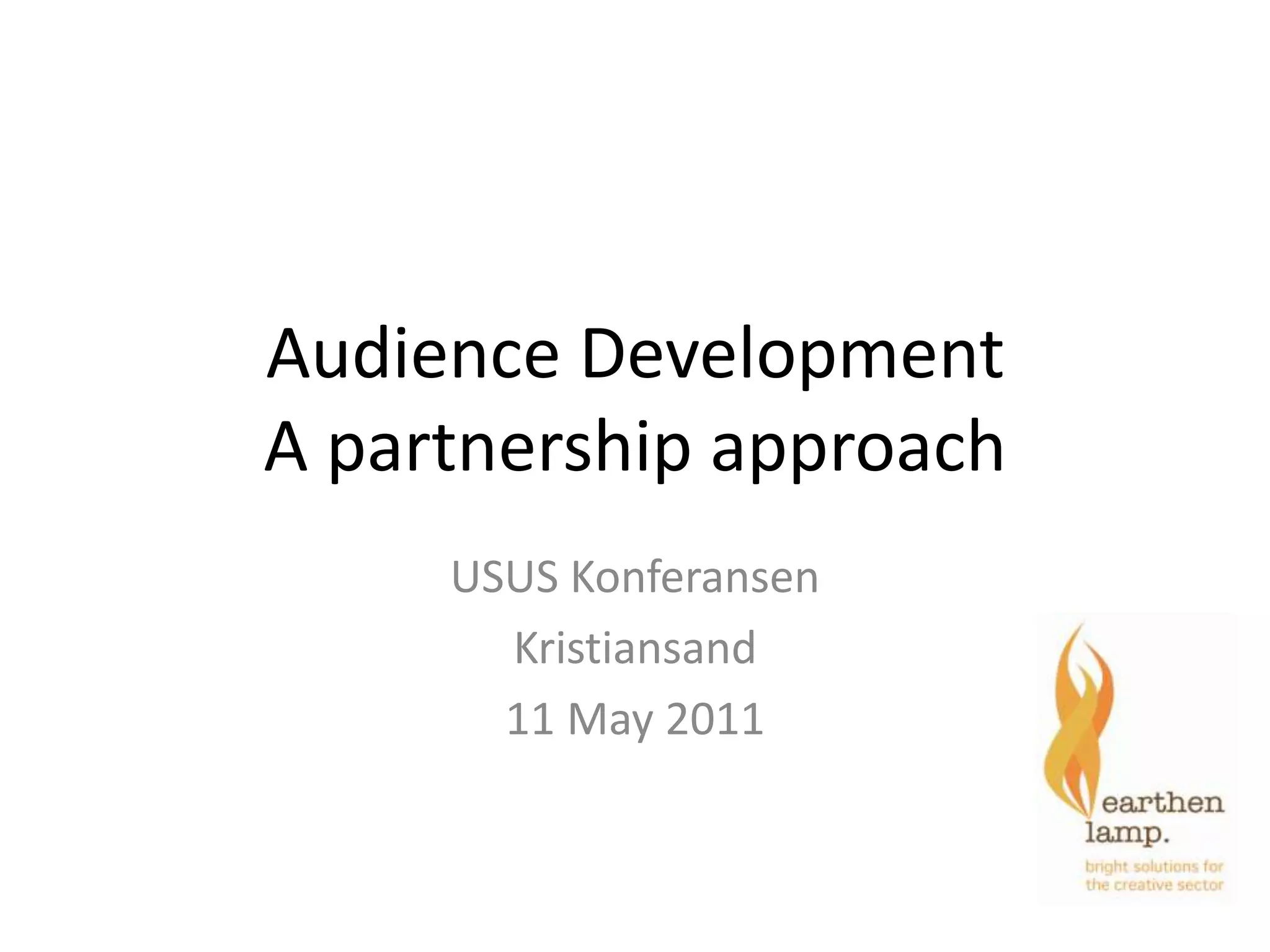 This document discusses audience development strategies through partnerships. It outlines two main priorities for audience development: retention of current audiences and growth of new audiences. It discusses segmentation of audiences to identify distinct types to target. Case studies on the Arts Nation and Big Picture projects are provided that partnered with various organizations to engage specific audience segments through localized programming and marketing. Successful partnerships require shared goals, clear communication, leadership, and understanding roles. Key challenges can include finding common language among partners and sustaining momentum of activities.