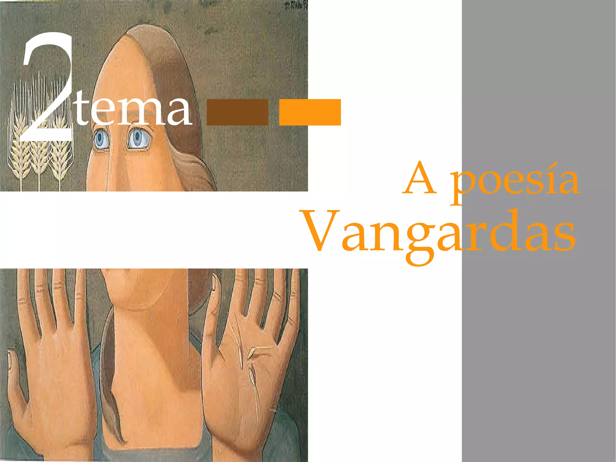 2 A poesíade Vangarda. Definición Movemento de renovación de todas as artes -pintura, escultura, literatura...-que xorde nas primeiras décadas do século XX . Amarelo – encarnado - azul (1925) Wassily Kandisky