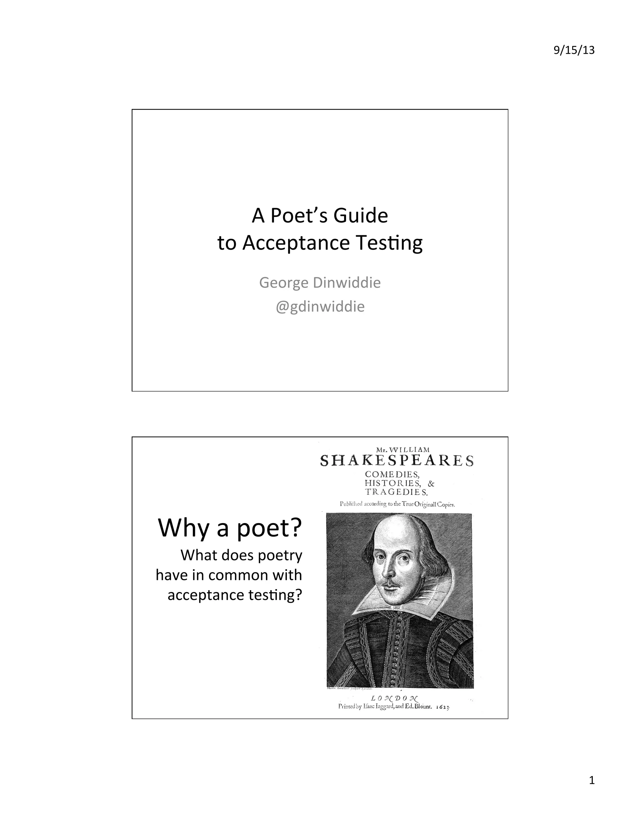 The document appears to be notes from an acceptance testing session where examples are provided and expanded upon to test different scenarios. It starts with a story about Mary and her lamb and provides examples of adding different variables like location or characters. It then moves to testing a library book reservation system, providing different user types and expected outcomes. The document ends with two short poems used to discuss how word choice matters.
