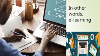 The document discusses the evolution and impact of online education, highlighting its accessibility and various forms such as random information gain, user-oriented courses, and video conferencing. It outlines advantages like flexibility, a wide range of resources, and opportunities for skill development, while also noting challenges such as lack of motivation, isolation, and technological barriers. Recommendations for improving online education include enhancing internet access for rural students and utilizing television for educational broadcasts.