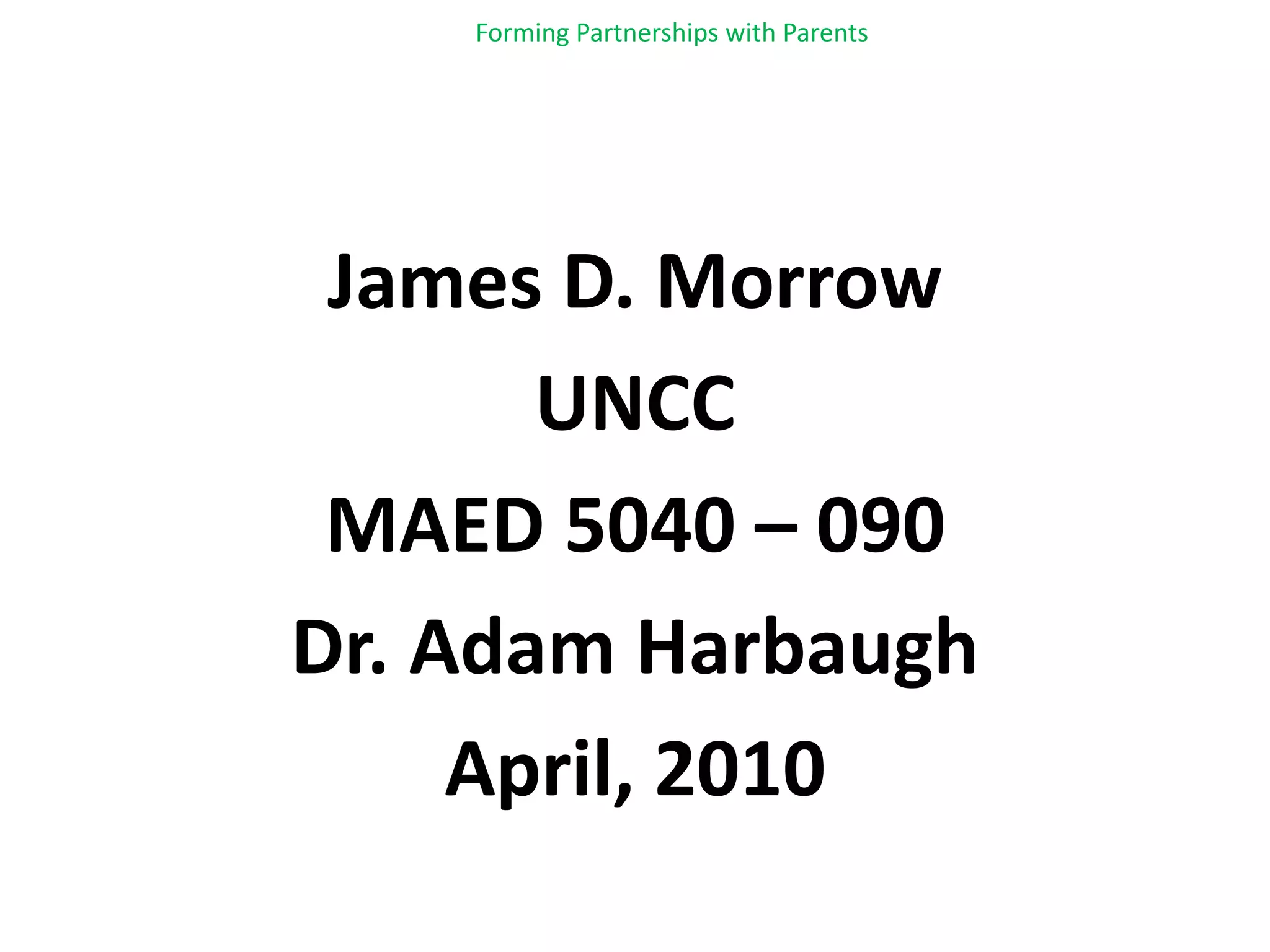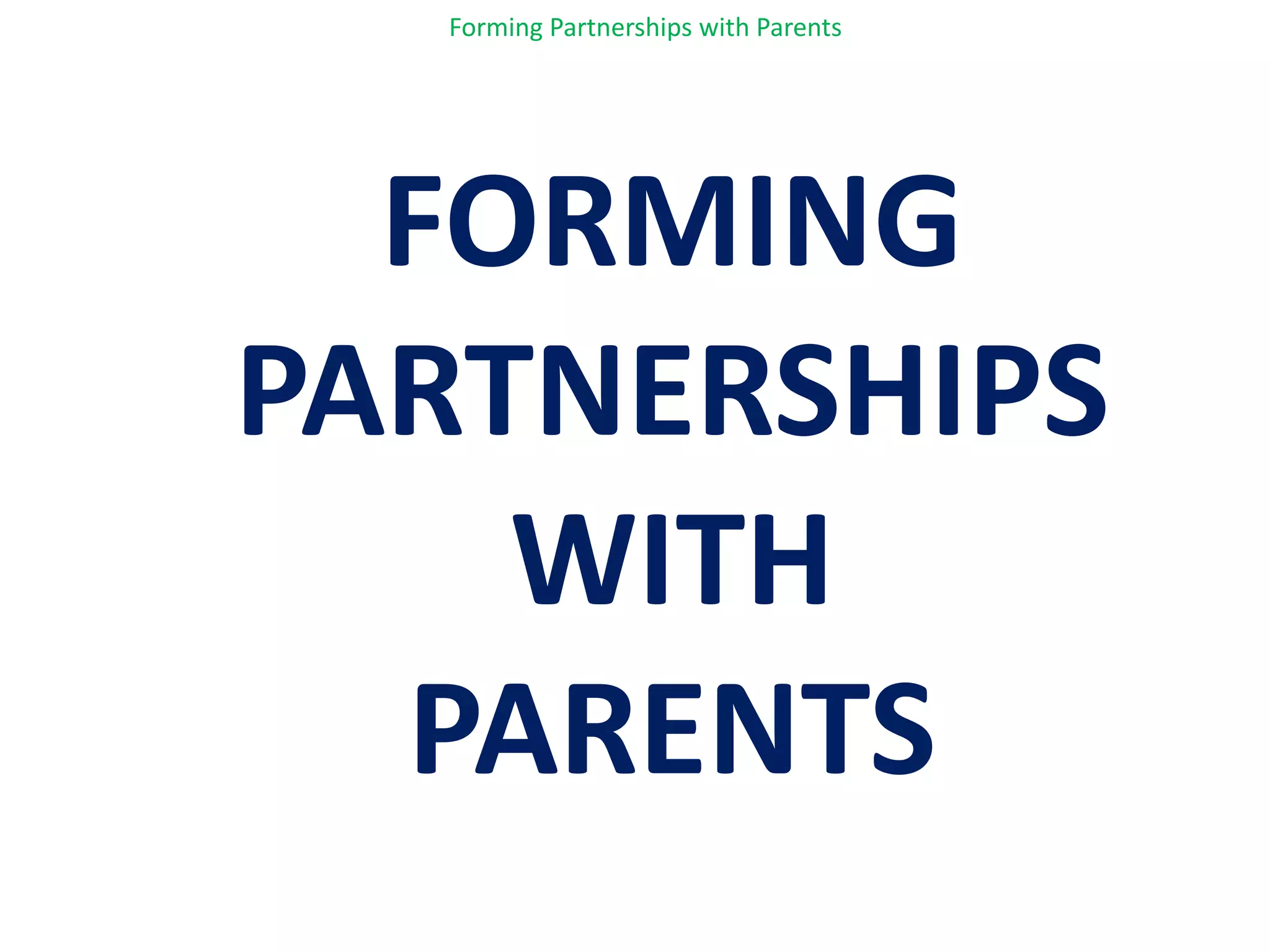 This document discusses strategies for forming partnerships with parents to engage them in their child's education. It provides tips for initial contact with parents through a welcome letter, back to school nights, open houses, and parent-teacher conferences. The document offers suggestions for communication methods, addressing academic or behavioral concerns, thanking parents, and providing resources for teachers on partnering with parents.